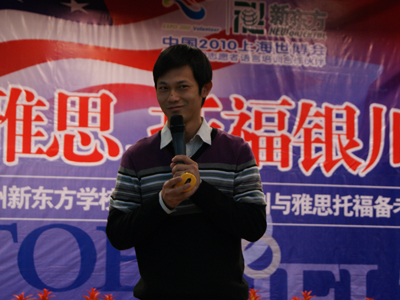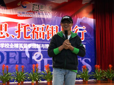 兰州新东方优能中学教育学习中心主管王毅老师接下来登场。王毅老师主讲的内容是“托福以及英语写作”。凭借多年的实战教学经验,王毅老师从托福考试出题趋势、答题方法以及种种注意事项等方面做了深入的讲解。他那一贯帅气的演讲和有点冷幽默的语调,博得了全场众多掌声。掌声中,笑声中……学子们不但学习了解到了相关的英语知识,更是真正领略到了新东方的魅力所在。