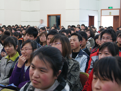 离开场时间还有半个小时,宁夏大学国际交流中心报告厅600个座位早已座无虚席。很多没有占到座位的学子们站在报告厅里,大家都热切地期待着讲座的开始。