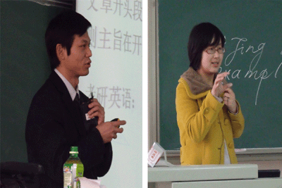 “各位同学大家好……”在一阵清新明快动听的开场白中,新东方美女明星老师周静开始了她今天的演讲。在考研英语中,同学们常常会忽略一些最基本的语法和英语逻辑思维问题。周老师就这一问题展开向同学们分析讲解了考研英语中的种种问题。之后周老师又向同学们传授了一系列考研英语写作、阅读等题型的解题方法和怎样能够获得较高分数的小技巧。周老师细致而精彩的授课引得了在场同学的一致好评,大家纷纷报以热烈的掌声。