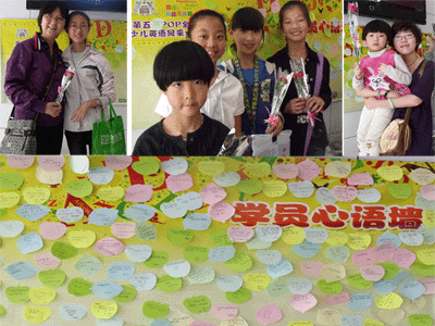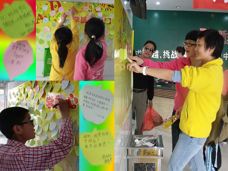 中午12:00,正是学员下课的高峰期,在中山路校区的大厅中,工作人员把一支支饱含爱意的康乃馨递到下课的孩子手中,让孩子们再转送到妈妈手中。孩子们高兴地接过鲜花,并且在精致的即时贴上写下自己对妈妈的母亲节祝福,郑重的贴在学校制作好的心语墙上。还有些妈妈正好是来接孩子下课的,于是工作人员便亲自把鲜花递到这些母亲的手中,并为他们送上一句真挚的“母亲节快乐”。收到鲜花的妈妈们脸上绽放出了同花儿一样美丽幸福的笑容。
