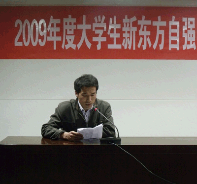 5月22日,由共青团甘肃省委、甘肃省学联、兰州新东方学校联合主办的2009年度中国大学生新东方自强奖学金颁发暨新东方经济困难大学生公益培训班开班仪式在兰州隆重举行,共青团甘肃省委副书记张旭晨、共青团甘肃省委学校部部长、甘肃省学联秘书长吴萍、兰州新东方学校校长孔建龙出席,团省委学校部副部长、省学联常务副秘书长杨成主持仪式。省内“中国大学生新东方自强奖学金”获得者、“新东方西部特困大学生专项助学金”获得者、“新东方经济困难大学生公益培训班”学员和来自省内各高校的大学生代表参加了仪式。