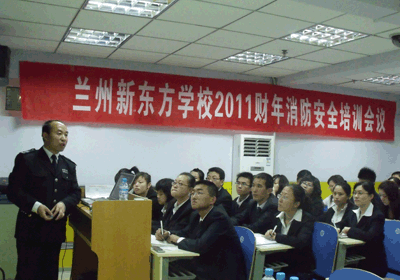 伴随着2011新财年的到来,为了保证兰州新东方学校各项工作安全顺利地开展。 6月8日,兰州新东方学校特邀兰州政安防火知识宣传中心宋海斌教官,对全体工作人员进行了关于消防安全知识的培训。