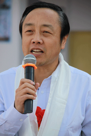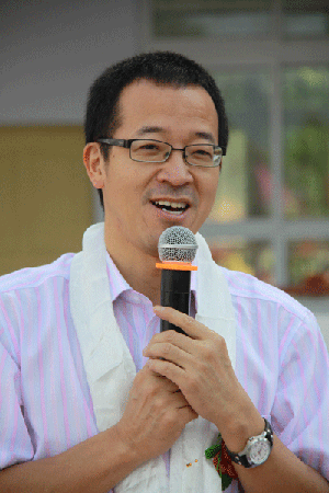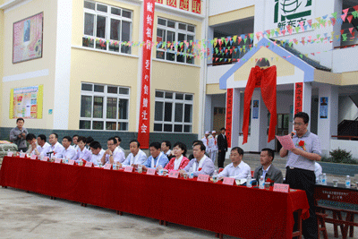 俞敏洪老师首先表达了对石家山新东方抗震希望小学落成的祝贺。俞敏洪老师说,新东方作为一个负有社会责任的企业,长期以来一直非常关注贫困地区的教育发展。08年汶川地震发生后,在已经向四川灾区捐资两千万元后,又向受灾严重的甘南藏族地区捐资300万元用于建设一所高水平的抗震希望小学。在抗震希望小学建成后,新东方还将从全国各地选派优秀教师到石家山支教,从硬件和软件两方面着手,帮助孩子们学习、成长,希望孩子们能够走出大山,放眼世界,将来报效社会。