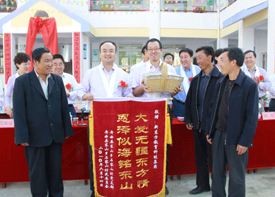 舟曲县人民政府、石家山村委会分别向新东方教育科技集团赠送了锦旗,感谢新东方对石家山教育的支持和帮助。村民还为俞敏洪老师准备了自家的核桃和大枣,来表达感恩之心、感谢之情。