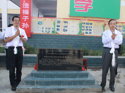 甘肃省人民政府副省长郝远、新东方教育科技集团董事长兼首席执行官俞敏洪共同为石家山新东方抗震希望小学揭牌。