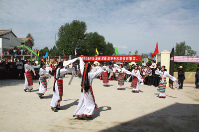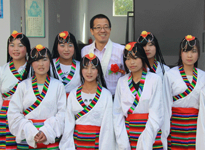 来自石家山的民间艺人以及新东方抗震希望小学的老师和学生代表们表演了自编秧歌和快板说唱以及精彩的藏族舞蹈,用这种简单而淳朴的方式表达了他们对俞敏洪老师以及新东方的感谢。