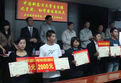 6月17日上午,青海省“2009年度中国新东方大学生自强之星奖、助学金发放仪式”在青海大学医学院举行。青海省教育厅副厅长赵海平、共青团团青海省委副书记牛军、青海大学副校长赵明、新东方教育科技集团兰州新东方学校校长孔建龙等领导,荣获“中国大学生自强之星”、“中国大学生自强之星提名奖”和“新东方西部特困大学生专项助学金”的学生代表和青海各大媒体的记者朋友参加了奖助学金发放仪式。