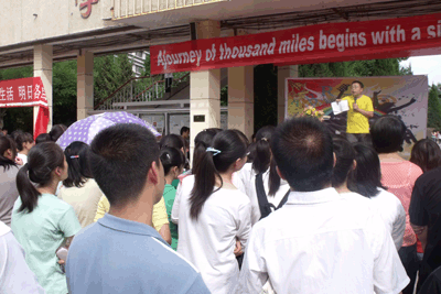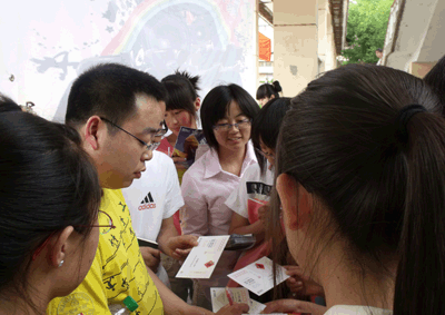 | 一场场讲座,收获的不仅是广大学子,同样令人感动的还有大学生们学习的热情。在联合大学,当天讲座安排在露天的小广场上。当时气温达到33度,太阳火热的炙烤着大地,前来听讲座的100多名学生站在阳光下认真地倾听新东方老师的讲授,所有的人仿佛都完全忽略了太阳的“火辣”,讲座结束后,广大学子还围着老师问问题,让老师签名留念。