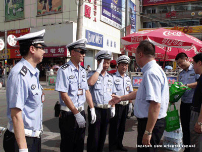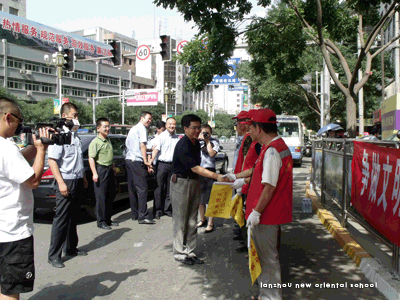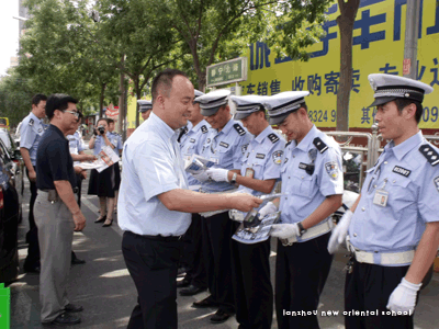 持续的高温天气还给民警、城管等部门工作带来了很多不便和挑战,但他们始终坚持奋斗在一线,保障着全市人民工作生活的正常运行。于是在结束了对交警同志们的慰问后,兰州新东方学校孔建龙校长又带领学校工作人员分别来到酒泉路城管大队、临夏路派出所等地,分别为在烈日下奋斗的民警、城管送上了慰问品。30日,气温依旧居高不下,酷热难耐。兰州新东方学校的工作人员又来到兰州市城管监察大队,为他们也送去了一丝清凉、一片慰问。