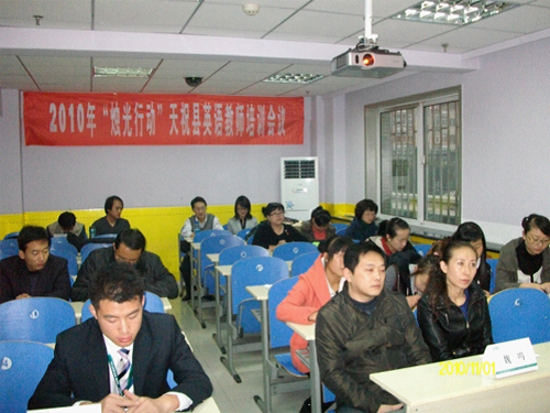 2010年11月1日上午,由民盟甘肃省委、兰州新东方学校共同主办的“烛光行动”——2010年天祝县英语教师培训活动在兰州新东方学校团省委教学区403教室如期举办。民盟甘肃省委社会服务部部长魏鸣,兰州新东方学校市场推广部主管赵金鑫,考试与综合能力学习中心主管范亚飞等领导出席开班仪式,范亚飞老师主持活动。