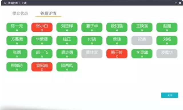 老师们也可以从答题器的效果图中了解学生的知识点掌握情况,从而判断出哪些知识点该重复重点讲。
